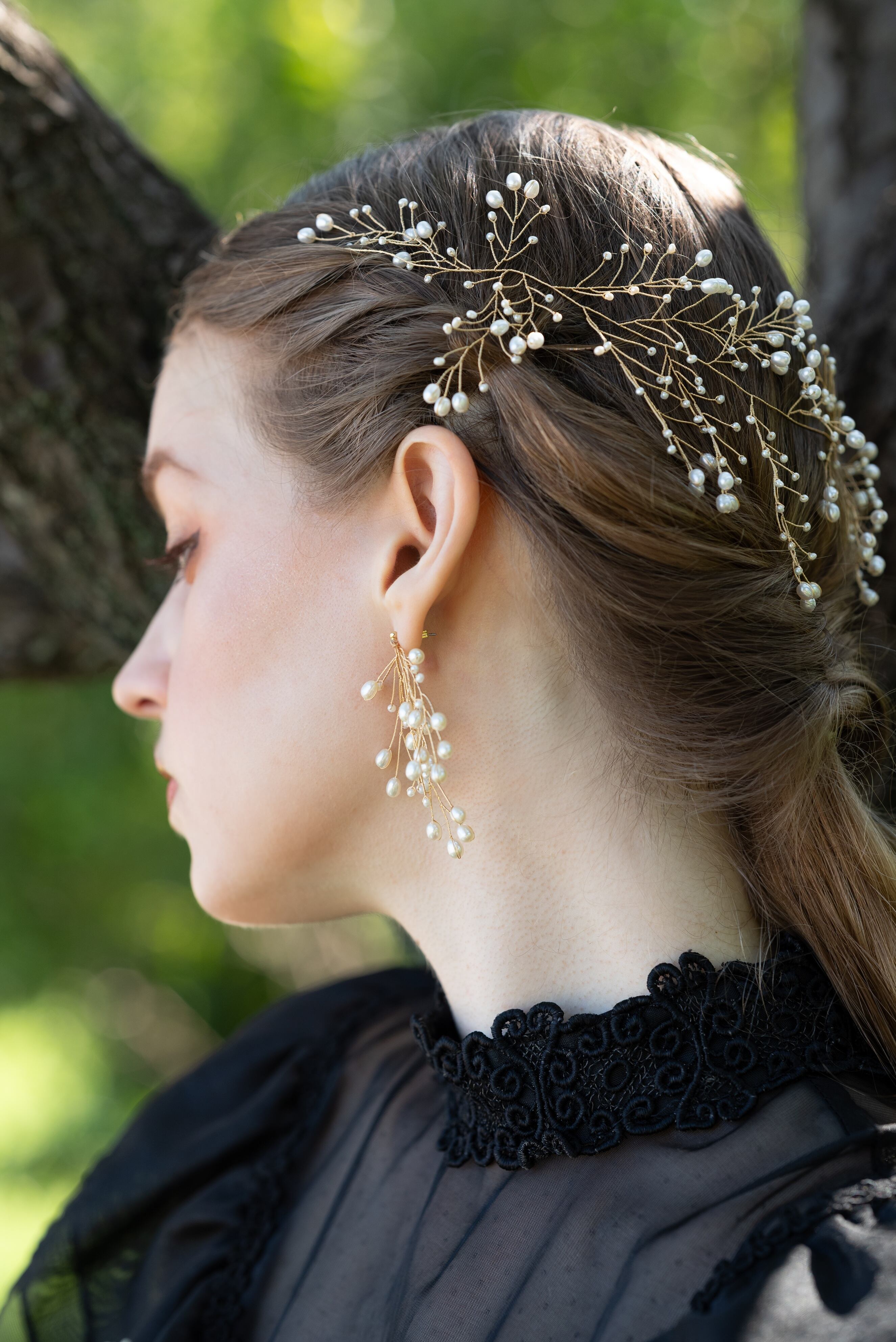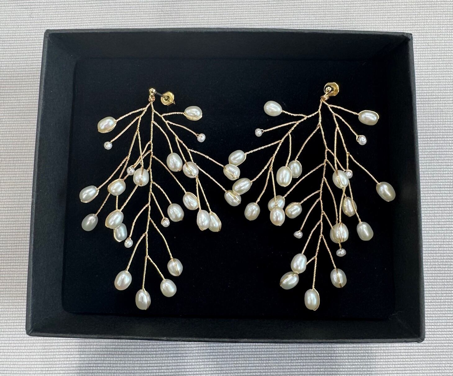 風に揺れる葉や枝の柔らかな流れにインスピレーションを得て、細いワイヤーと淡水パールのみで作られたボタニカルジュエリーです。